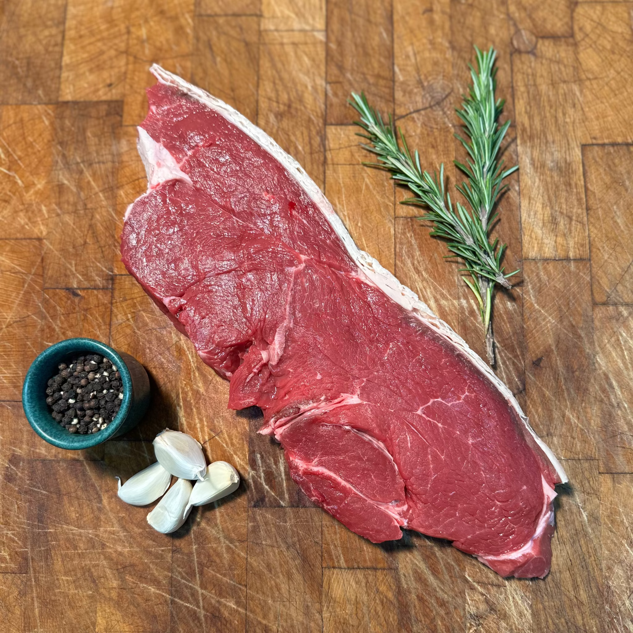 Single rump steak of various sizes.